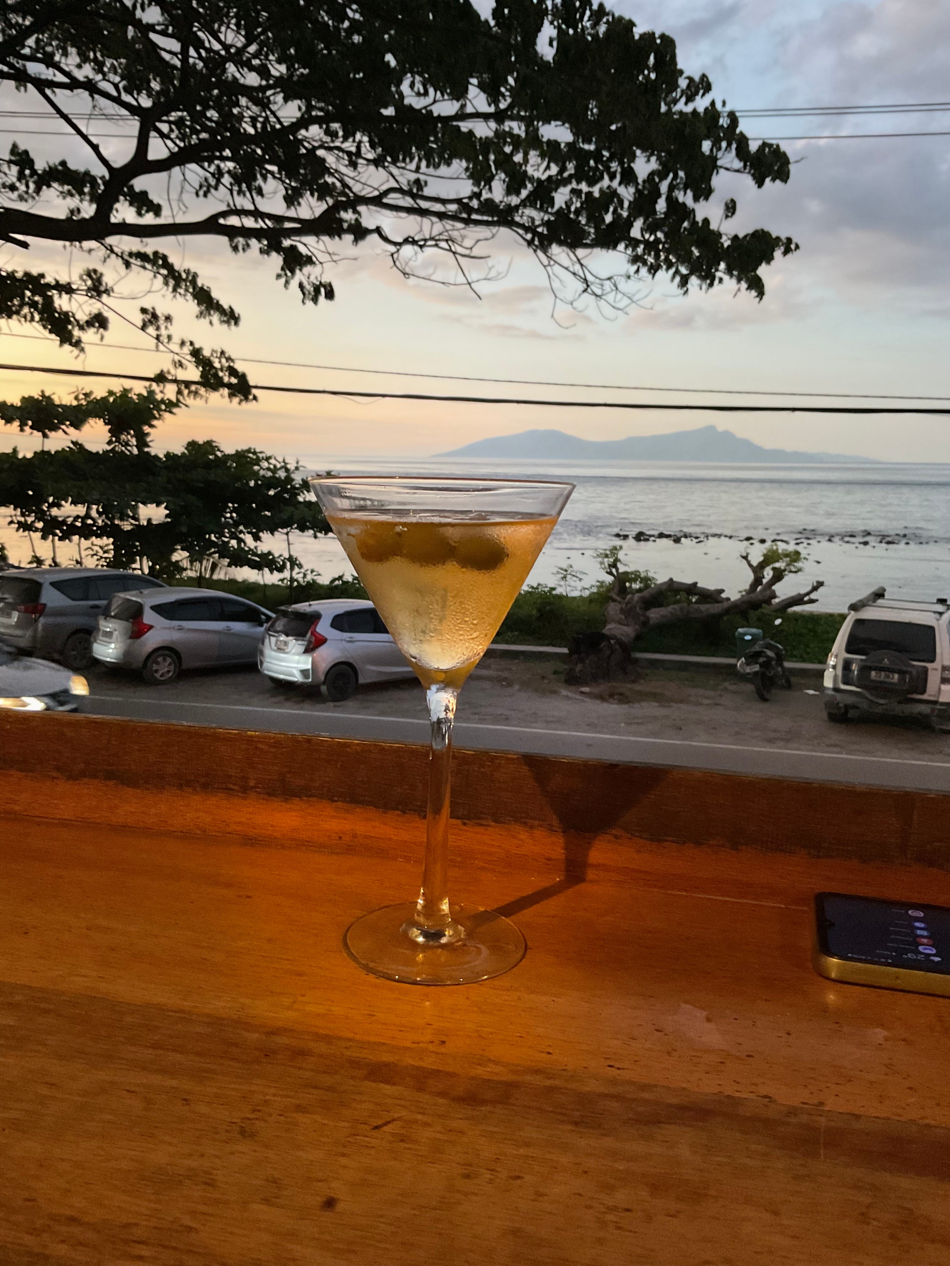And for me, at least, it certainly helps to sit down in a beautiful tropical sunset with a well-chilled dry martini...