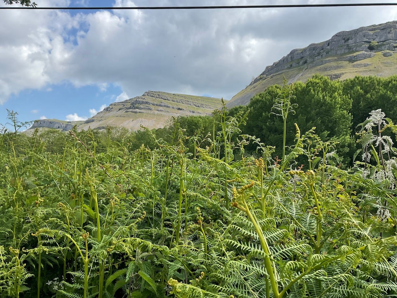 Taken slowly, it’s not too bad: a pleasant little byway lined with hedges and foxgloves, and the nice thing about precipitous roads like this is that you don’t have to walk very far before you can turn and see a vastly expanded panorama.